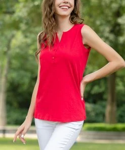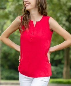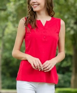 A trio of buttons punctuate the front of the sleeveless top and bring casual charm to your ensemble.