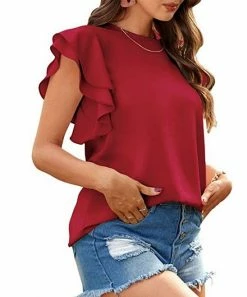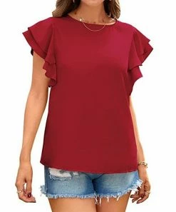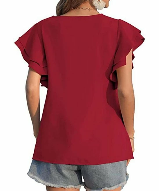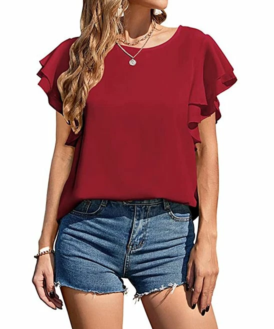 Update your warm-weather pieces with this light, feminine blouse complete with layered flutter sleeves.