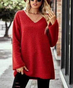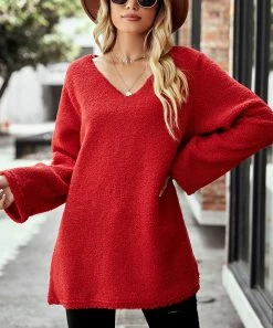 Lightweight v-neck sweater featuring a solid, easy-to-pair hue.