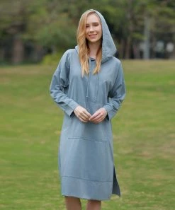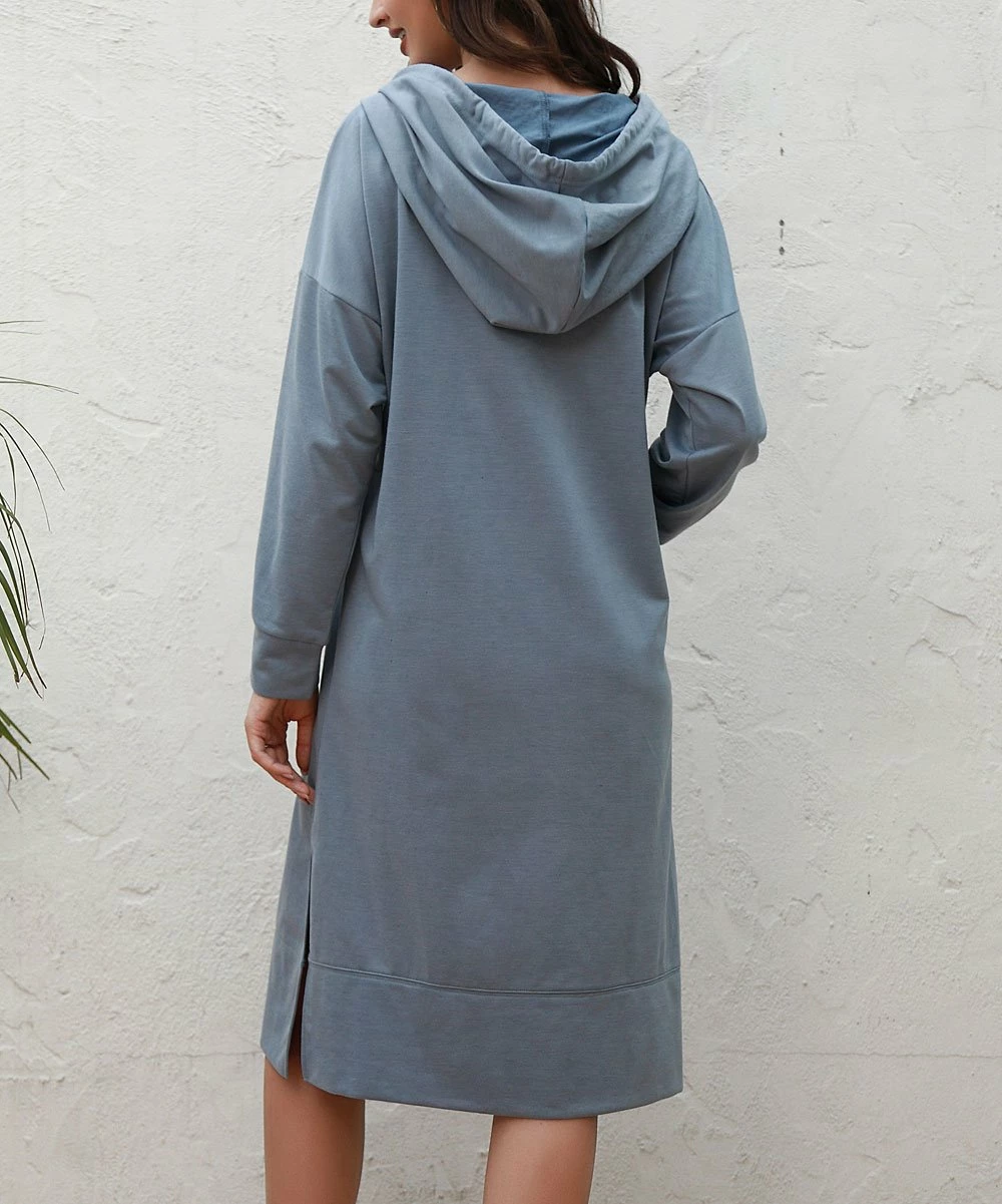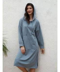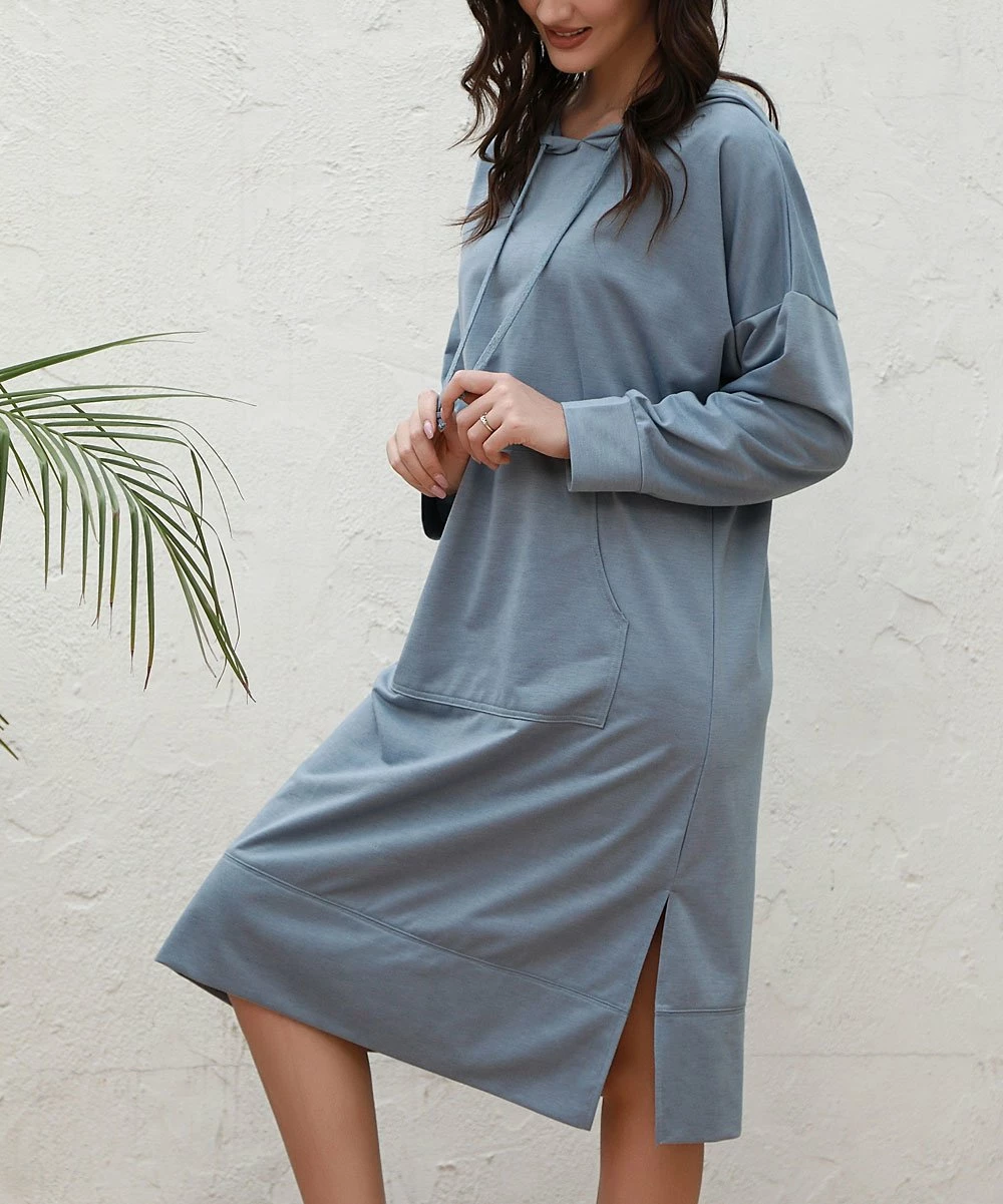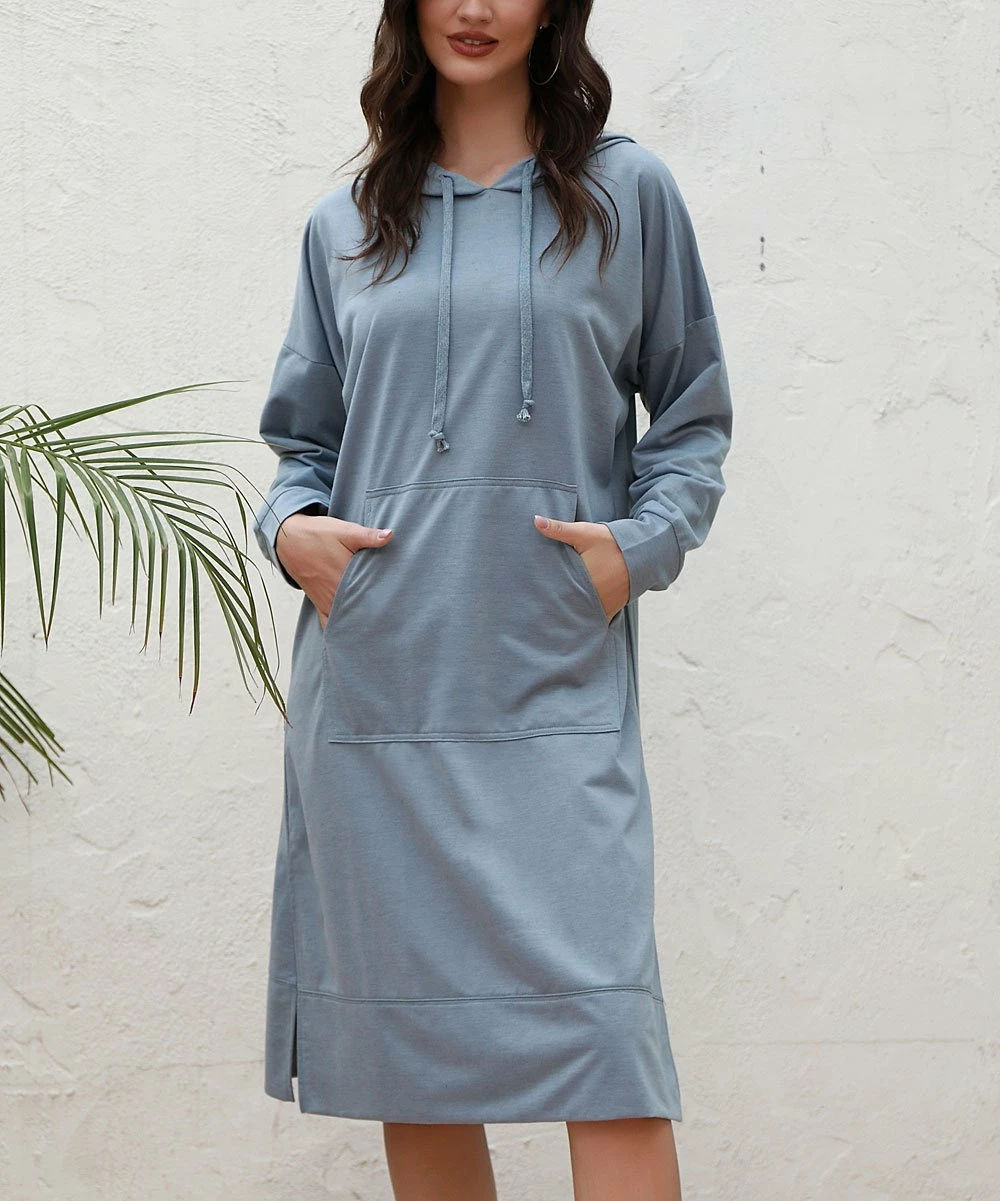 Add some casual flair to your easygoing day by throwing on this one-and-done sweatshirt dress designed with classic hoodie details.