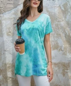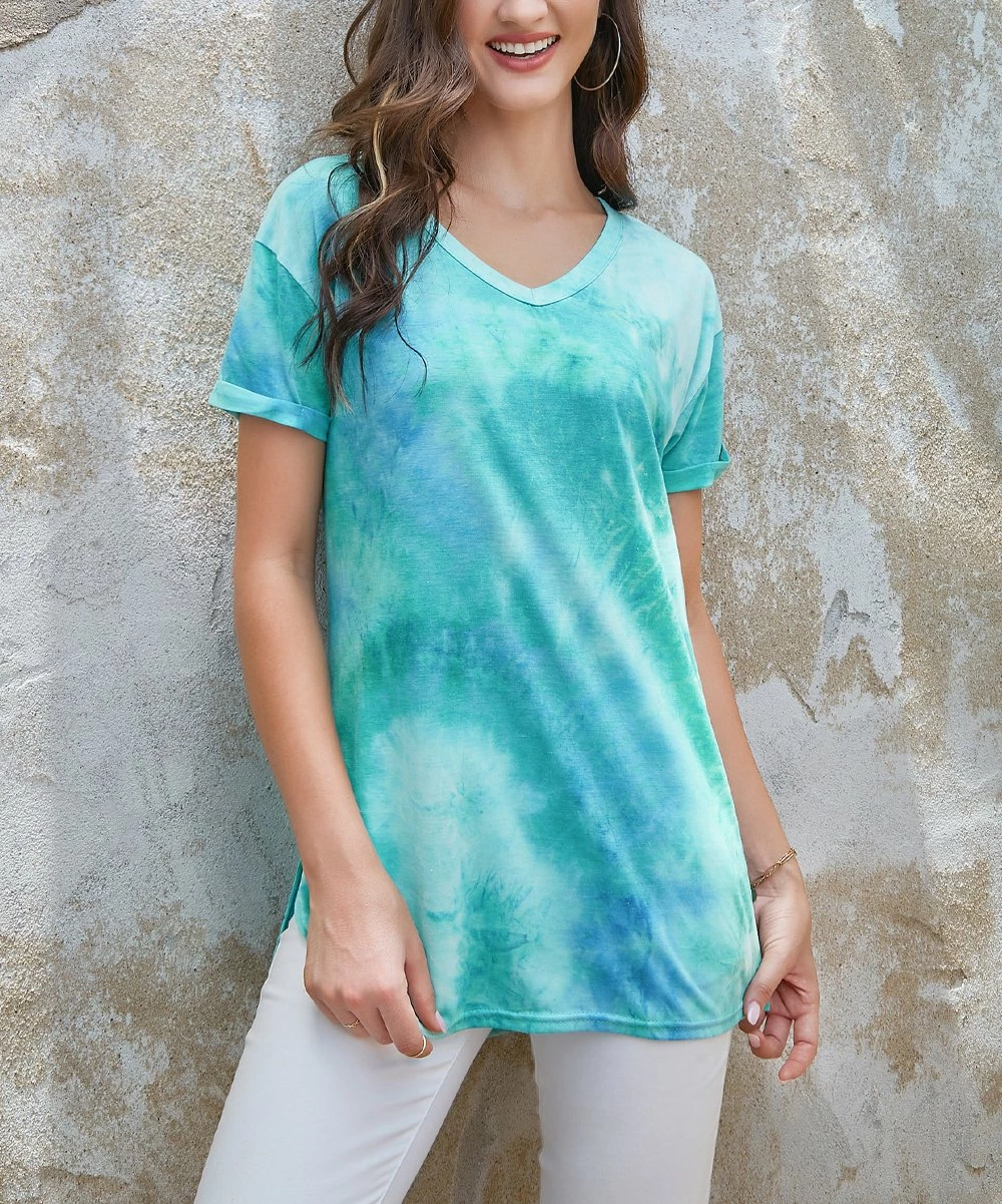 Set the tone for casual outings with this short-sleeve v-neck tunic that’s bound to manifest a mellow mood wherever you go.