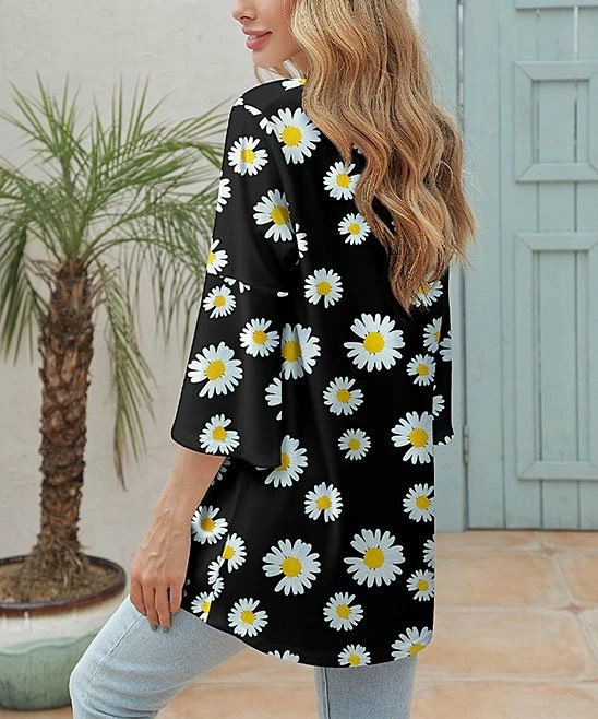 Take a style cue from the garden with this flowy tunic crafted with sophisticated tulip sleeves and a sweet daisy print.