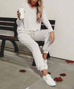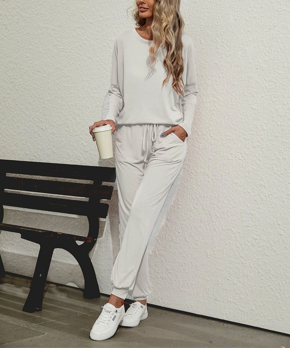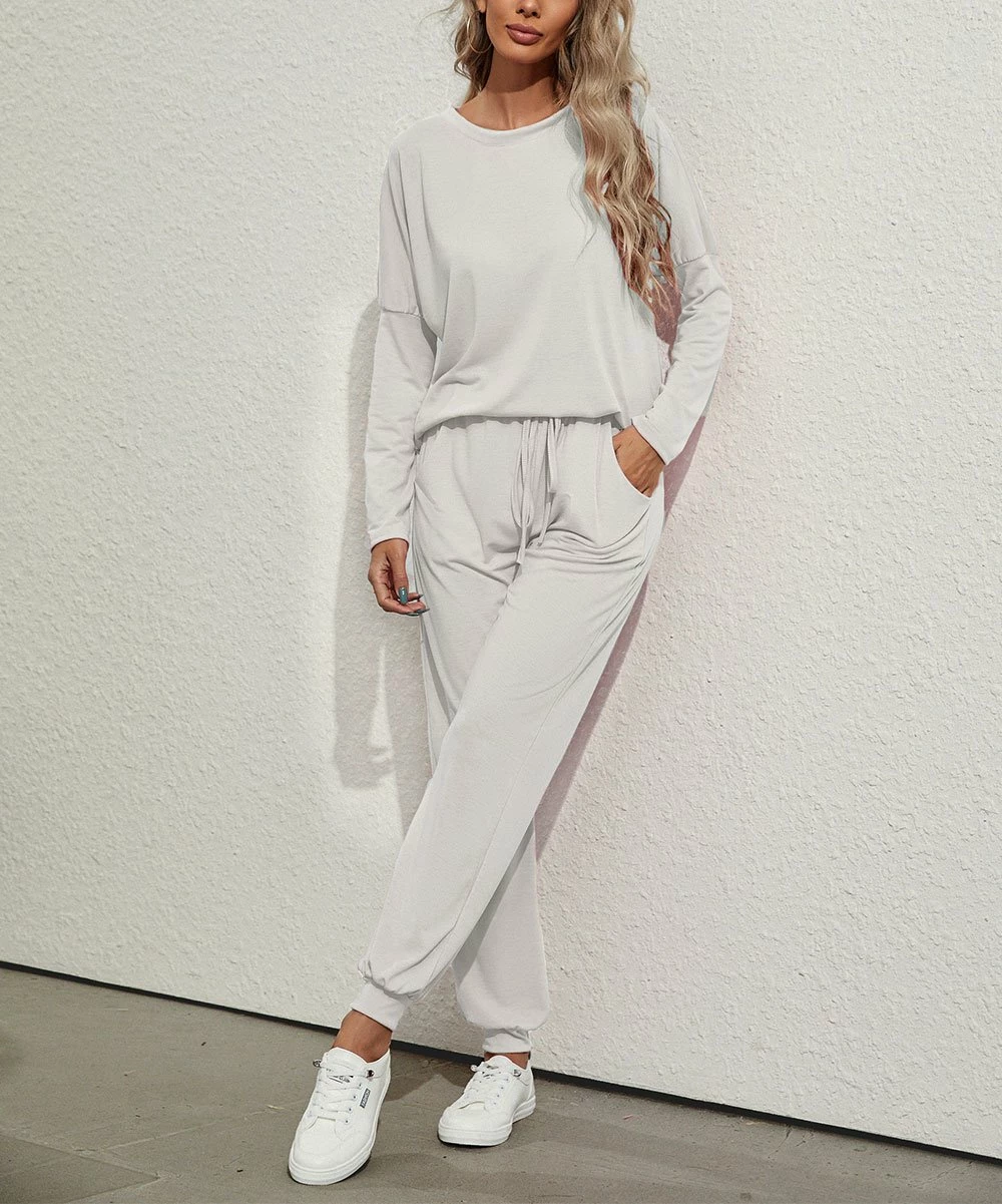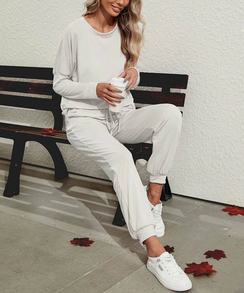 Curl up in casual comfort with this matchy-matchy loungewear ensemble featuring a soft cotton-blend sweatshirt and an equally cozy pair of joggers.