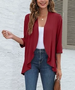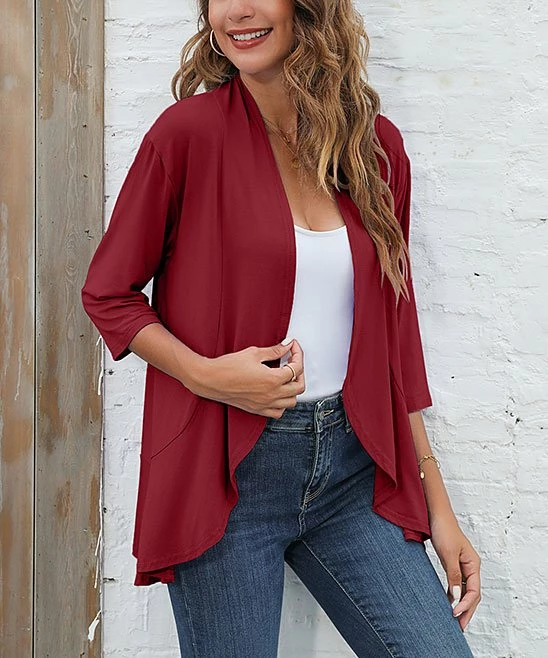 This open cardigan features a draping design and on-trend three-quarter length sleeves.
