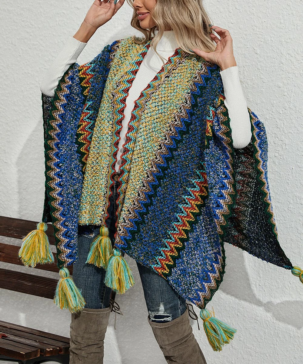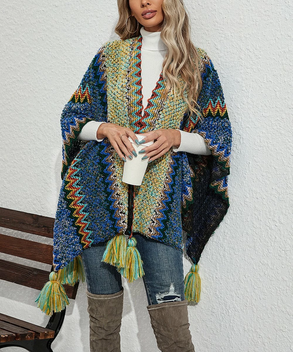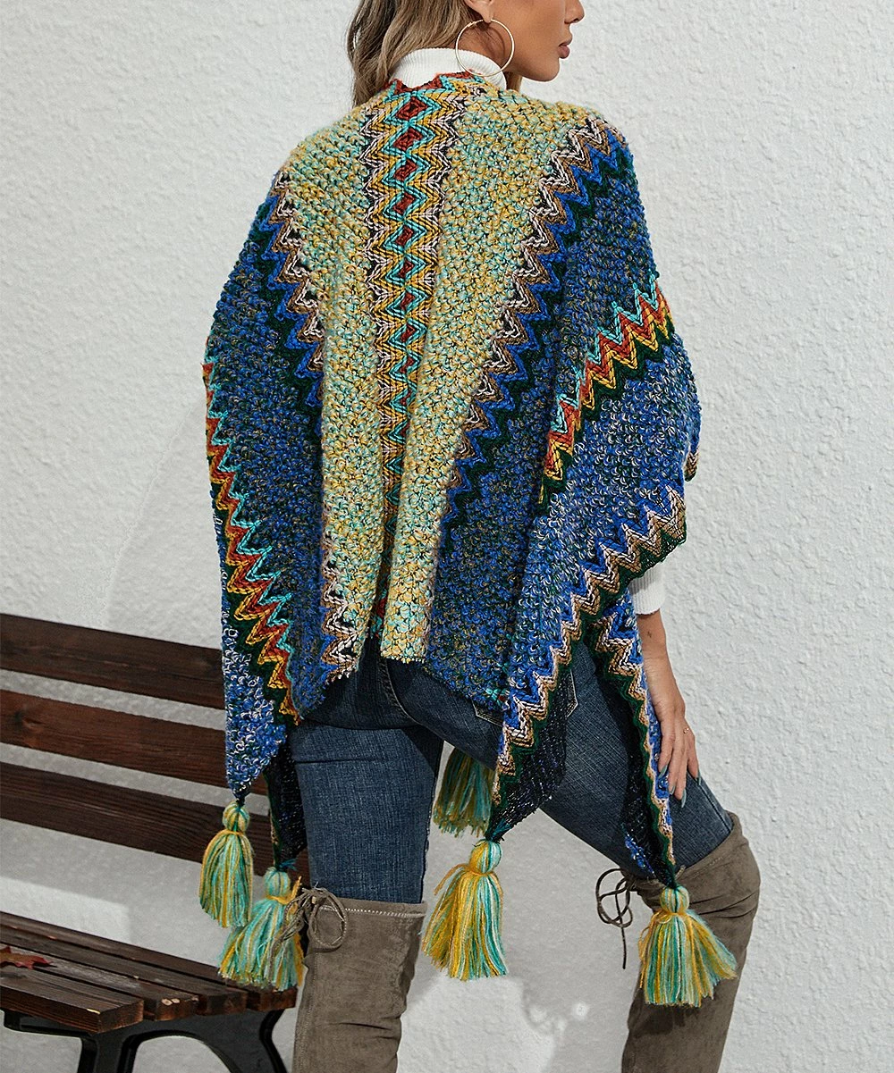 On chilly days grab this fun printed poncho to layer over any look for daylong cozy comfort and easy chic style.
