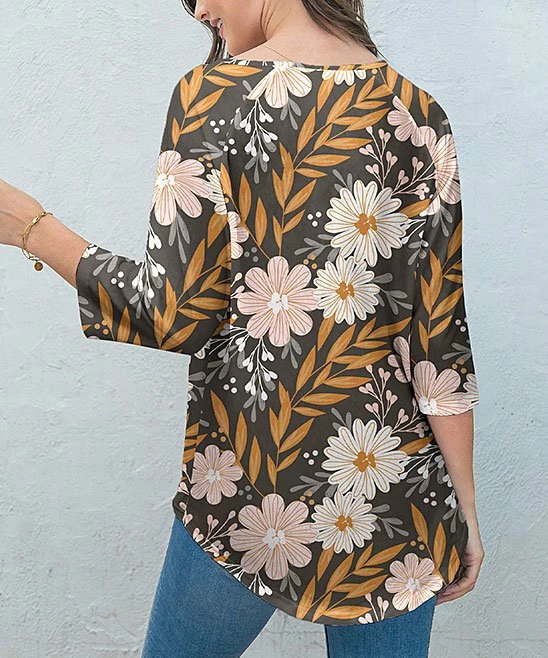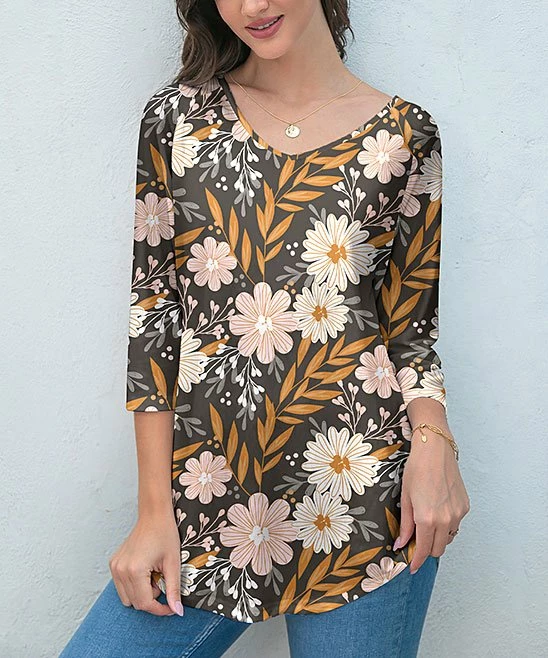 Greet warm-weather days in effortlessly-chic style when you rock this lightweight tunic with your favorite jeans or leggings. Stylish three-quarter sleeves and a bold-patterned design add eye-catching flair to the look.