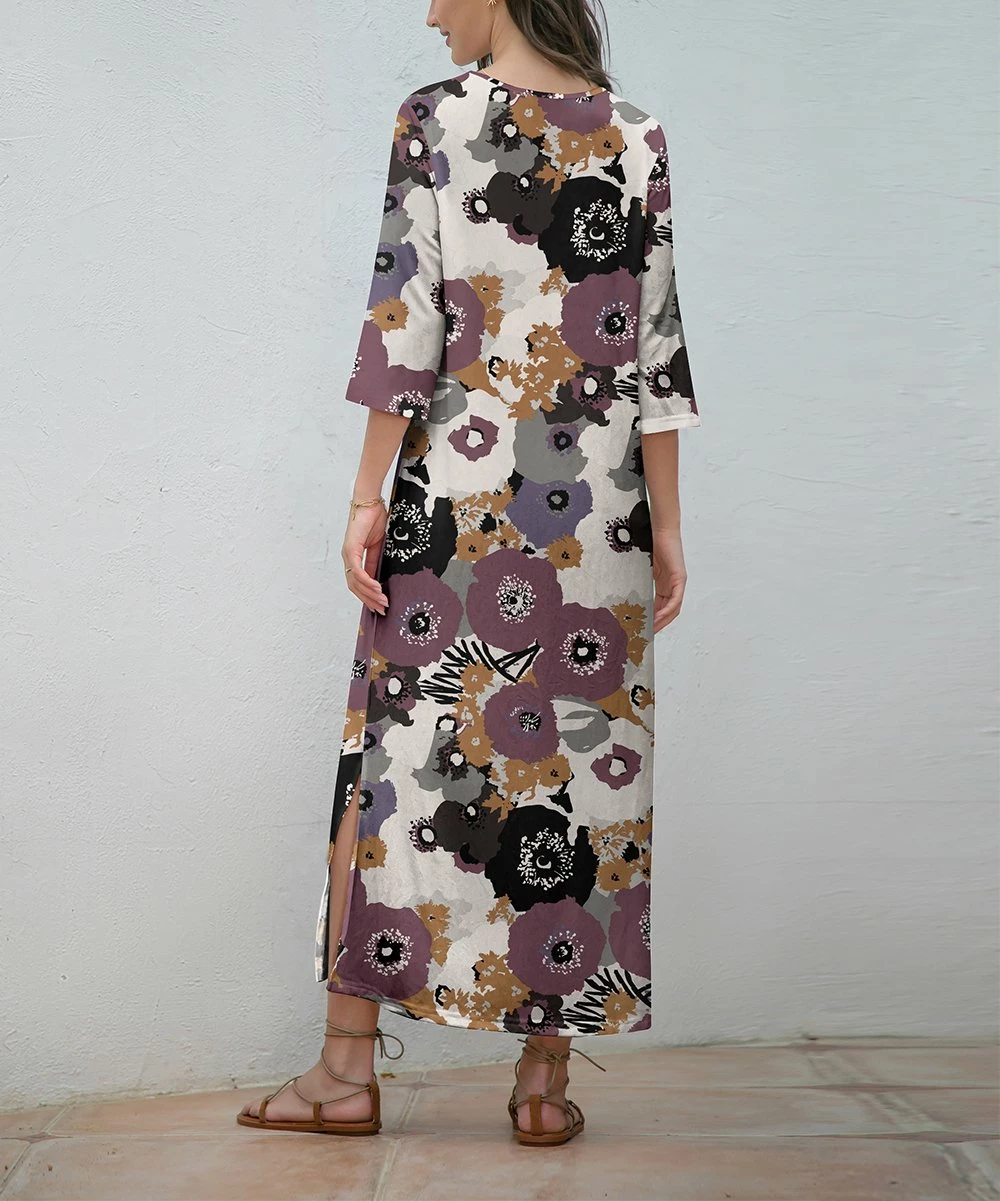 Add flowing flair to your closet collection with this maxi dress fashioned with a pop of print to show off your personality. .