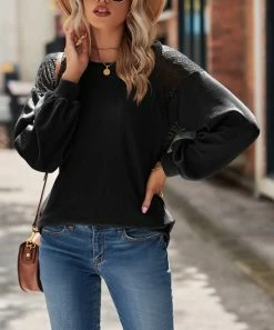 Wholesale β Z Avenue Black Waffle-Knit Lace-Shoulder Raglan Top – π© Women & Juniors β